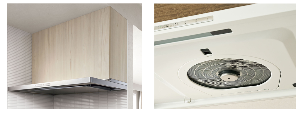 レンジフードはフィルターレス構造になったことや、ワンタッチでファンを脱着させることができるので、お手入れが簡単にできるようになりました。