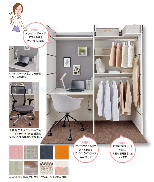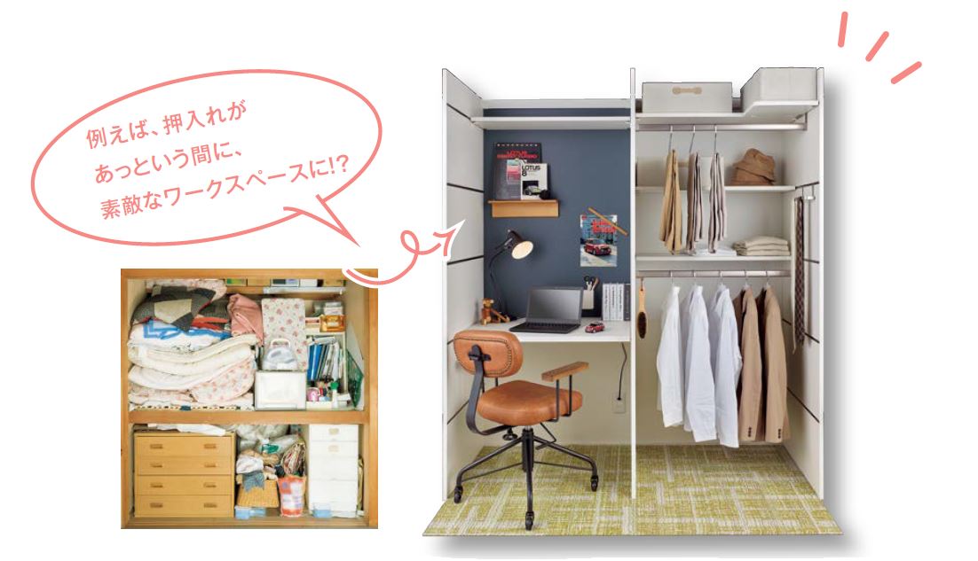 LIXILのヴィータスパネル。クローゼットや押し入れのスペースを活用して、機能的で素敵なワークスペースをつくることができます。