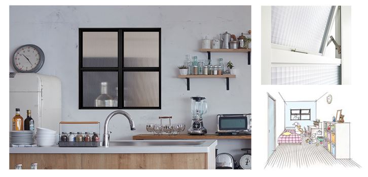 間仕切り壁に窓を設けることで、各部屋の中に風や光を通すことができます。オシャレ感を出しながら快適な空間を演出します。