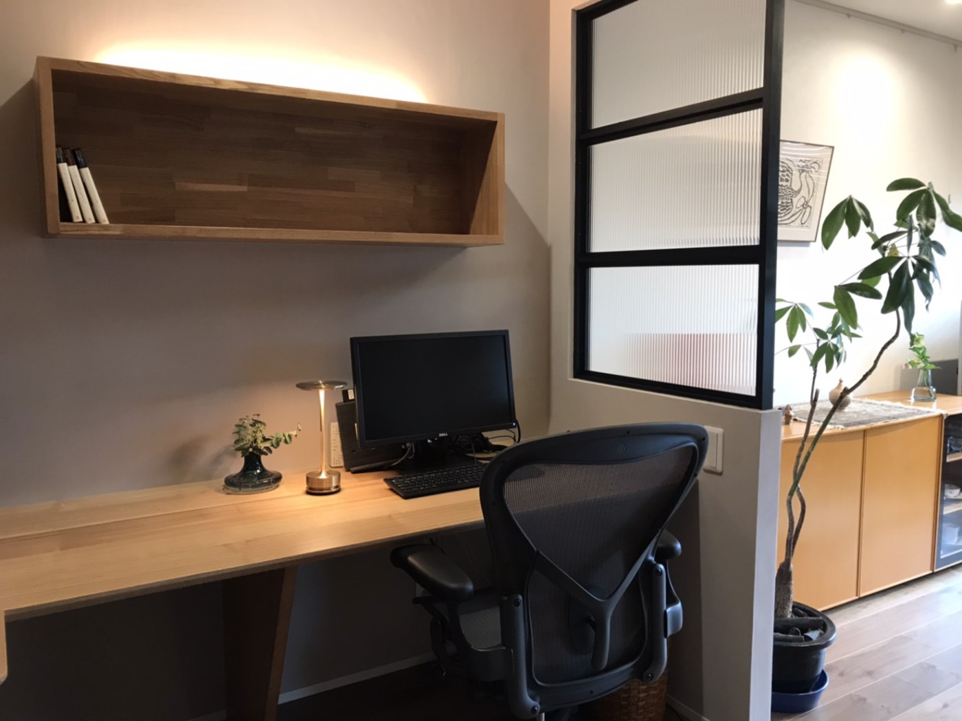 もともと和室だった箇所をLDKに取り込み、半個室のテレワークスペースに。