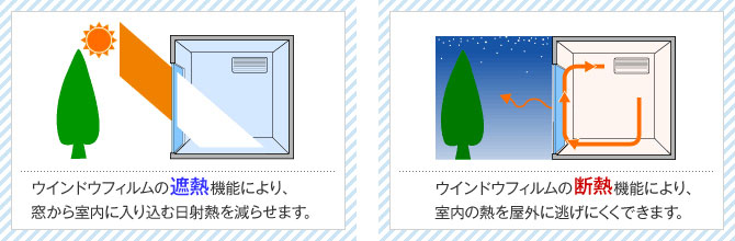 といったように、一役で様々な効果があるのも特徴です。赤外線90%以上をカットすることにより、エアコンの冷暖房エネルギーを外に逃がしにくくなります。