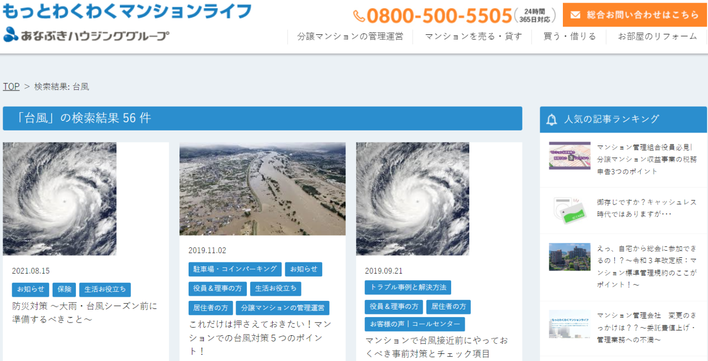 この「もっとわくわくマンションライフ ブログ」でも台風に関連した記事をたくさん発信しています。