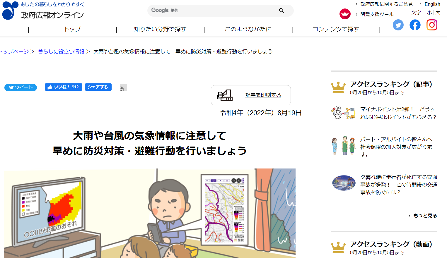 台風に関しては【政府広報オンライン】でも、情報提供を行っています。