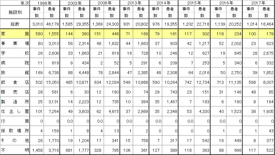 これはあくまで病院から保健所を通じて厚生労働省が把握した数値ですので、実際の食中毒はもっと多いと言われています。