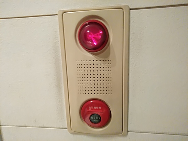 共用廊下やエントランス、学校や商業施設などでよく目にする赤い非常ボタンのついた装置です。
