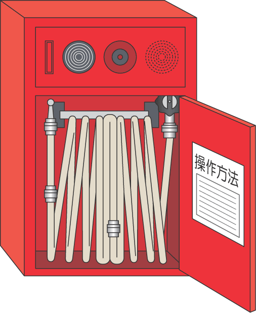 少し大きめの消火栓ボックスに収納されたホースにより初期消火をする設備です。