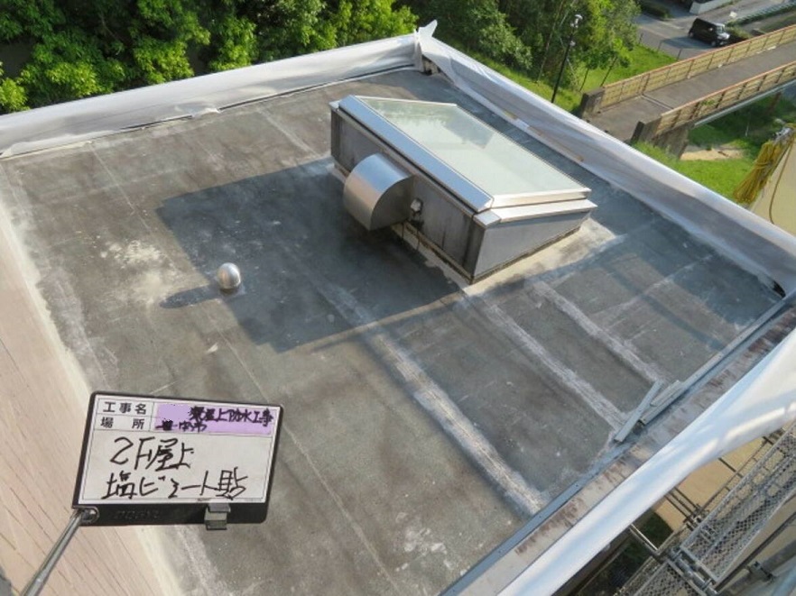 今年の5月に弊社管理受託施設で行った、屋上の防水の修繕施工を実施した例をご紹介致します。