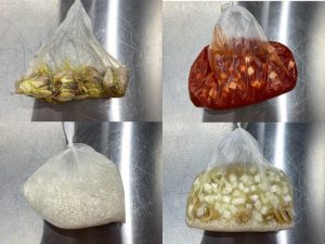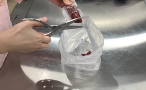 ㌽ ポリ袋の空気をよく抜いてから結ぶ