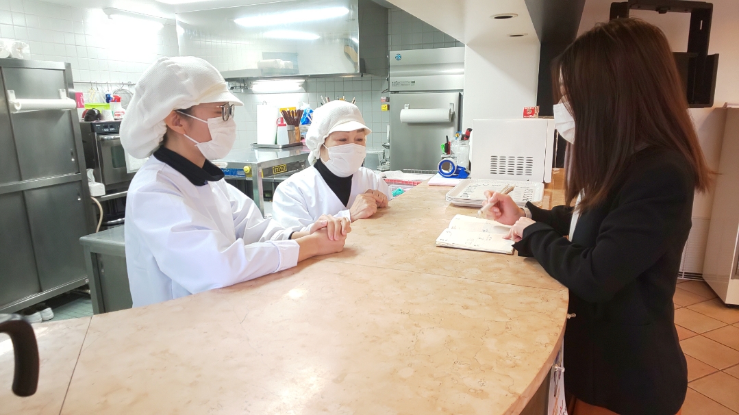 フードサービス推進部では、寮・社宅で提供している食事メニューの作成支援や食堂・厨房内の衛生管理状況の点検・指導を行っています。施設の管理運営上、特に営業担当と連携する場面が多くなってくるフードサービス推進部との打ち合わせは、衛生検査の結果だけではなく、検査訪問した時の気づき事項などについても共有しています。同じに見えるひとつの事象でも、見る立場によって違った意味を持ってきたり、ほんの小さなことが見えてきたり…。