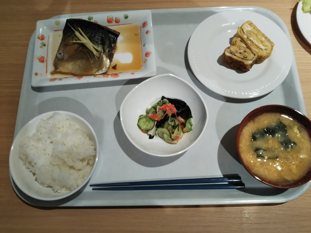 当日の献立は「サバの味噌煮」「だし巻き卵」「酢の物」の3品です。