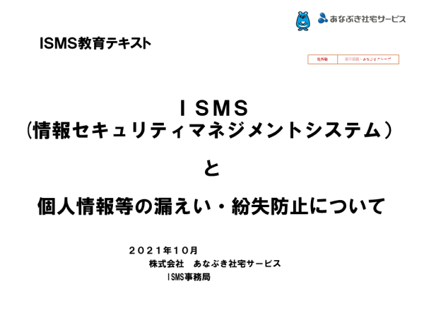 ISMS部門では、情報セキュリティ部門ということもあり個人情報漏洩を防ぐために気をつけるべきことや、犯人が個人情報を聞き出す手口について紹介したり、実際に未然に防止した例について紹介したりするなど、ひとつひとつの事柄にリアリティをもたせるような内容となるようにテキストの作成をしました。