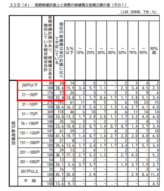 その中でも、特に小規模マンションは、不足がある割合が比較的に高いです。