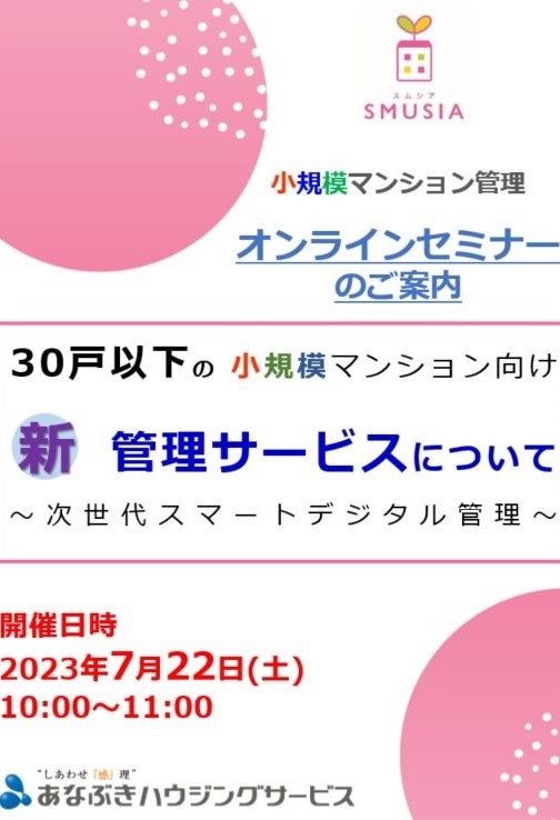 ㉕小規模マンション 管理サービス SMUSIA(スムシア) オンラインセミナー開催について