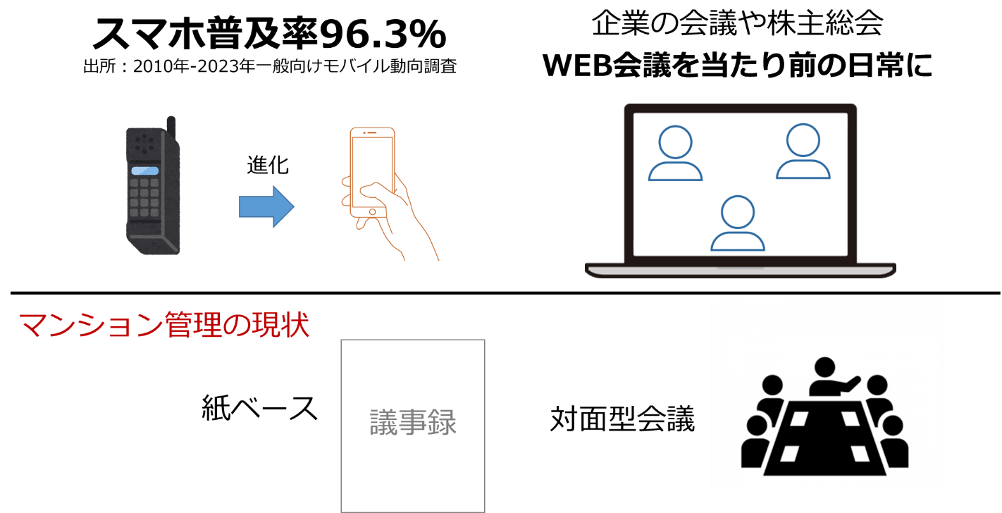 掲示板、紙の議事録や対面型の理事会・総会の開催……マンション管理業務には未だアナログ的な対応が多く、数々の業務に手間を要しています。
