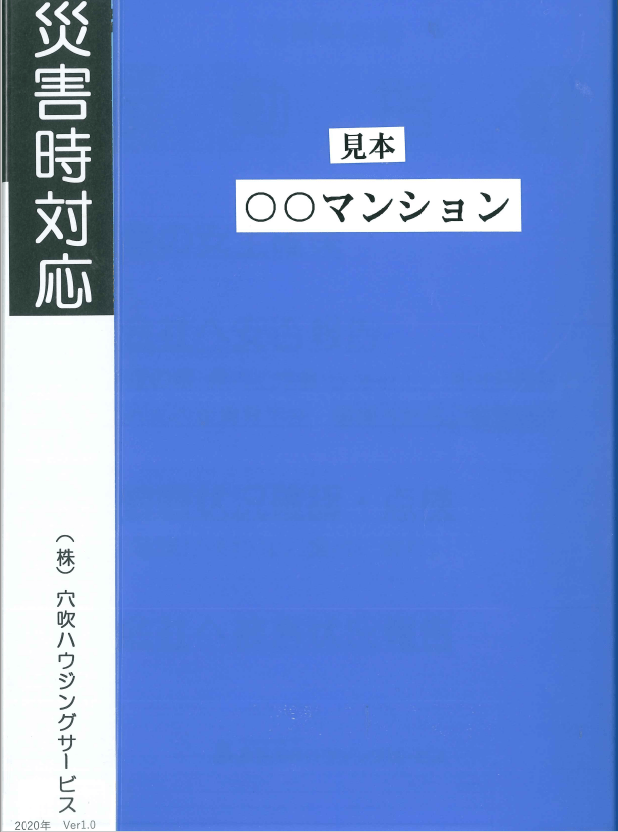 当社では、ご要望があった管理組合様に防災ファイルを配布しております。大規模自然災害により、停電、通信障害、交通麻痺などインフラ・ライフライン等、甚大な被害を受けた際に、被害を最小限にとどめ、管理員が管理マンションの必要最低限の情報をすぐに確認でき、状況を早急に把握するためです。