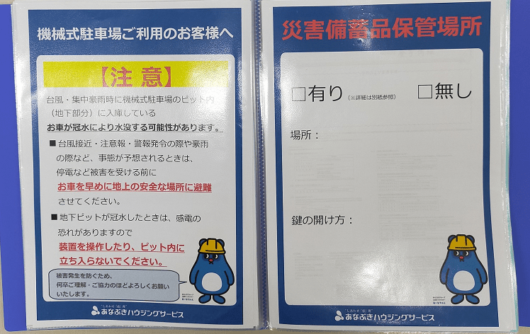 管理組合の理事長あるいは役員の方々が保管場所を知らず、いざというときに居住者の方が「防災用品ってどこにあるんだろう」とならないよう、ご注意ください。