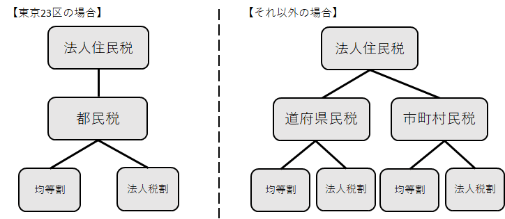 東京23区以外に事業所がある場合には道府県民税と市町村民税のように分かれておりこれらをまとめて法人住民税と呼びます。