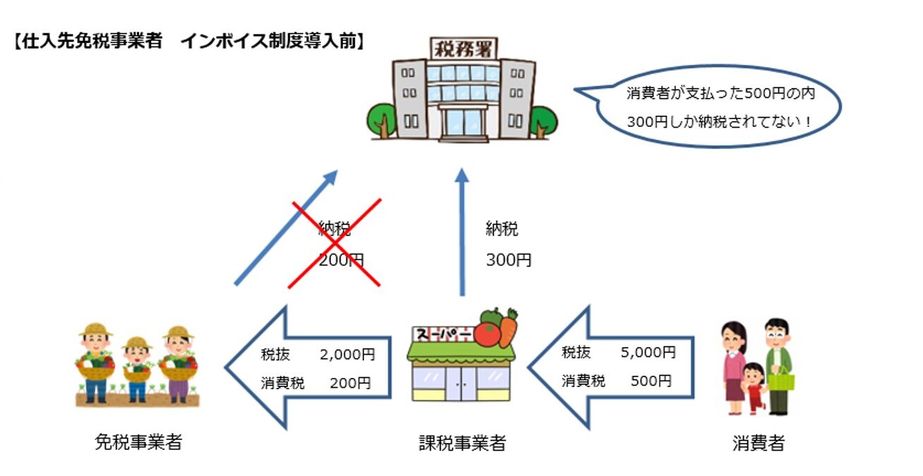 この場合国としては消費税をきっちり徴収できますが、課税事業者は仕入控除ができないため負担が増えてしまいます。