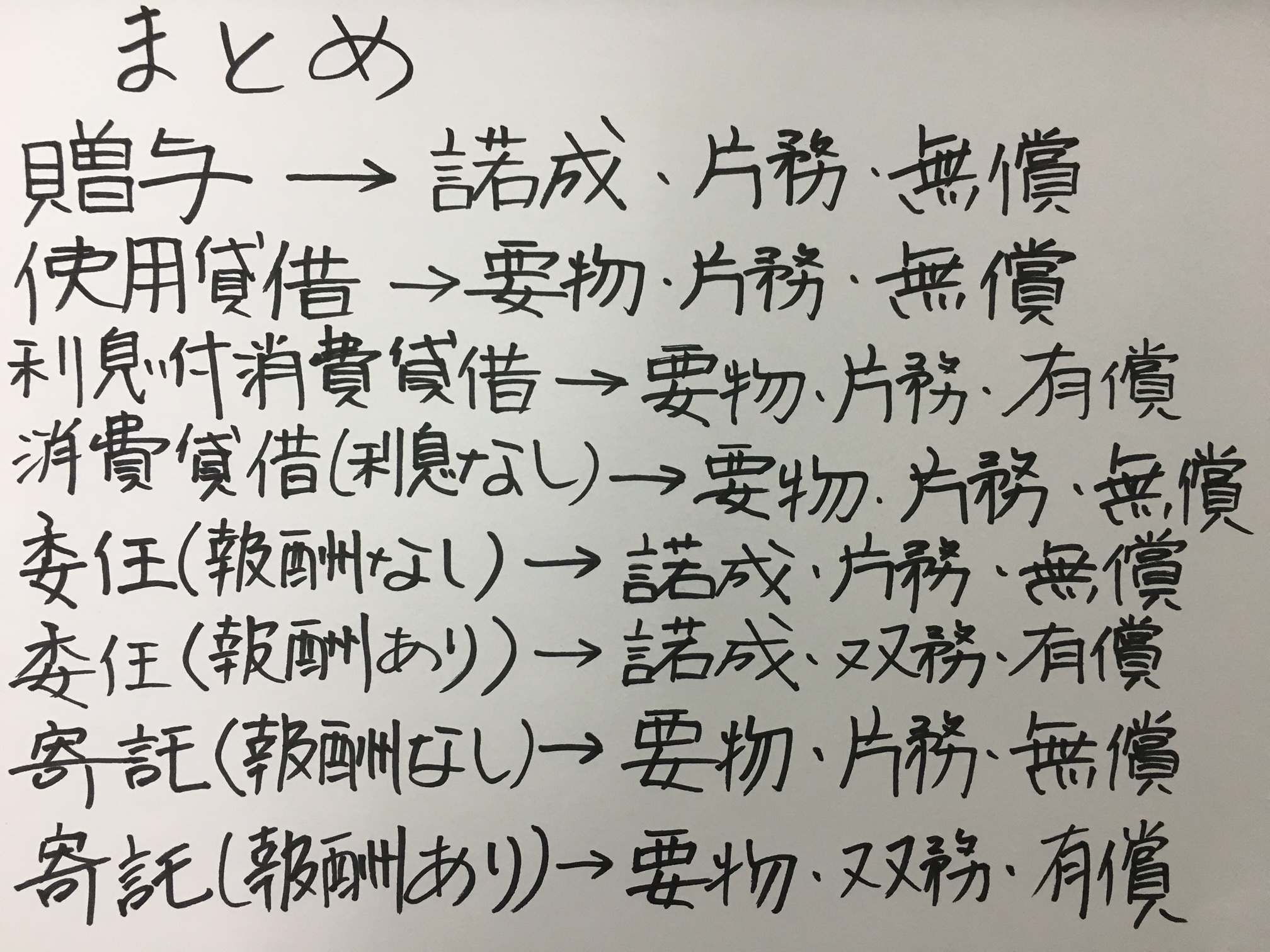 試験対策上は、贈与、使用貸借、消費貸借、委任、寄託をしっかり押さえることがポイントと言えるでしょう。