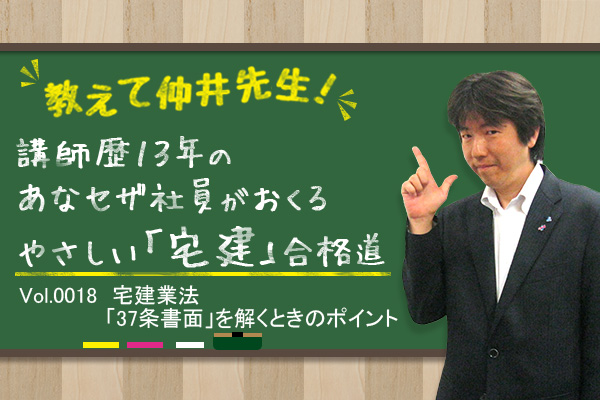 こんにちは、仲井です。今回も近年の改正点を含む分野を説明します。出題は少ないですが、「重要事項説明書面(35条書面)」のポイントを、「37条書面」と比較しながら説明します。