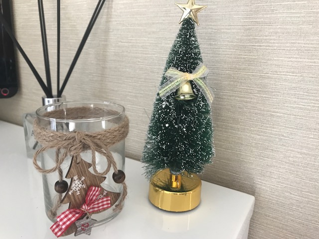 クリスマス気分を味わいたくて高野の一人暮らしの家にも100均で買ったミニツリーを飾り付けました!
