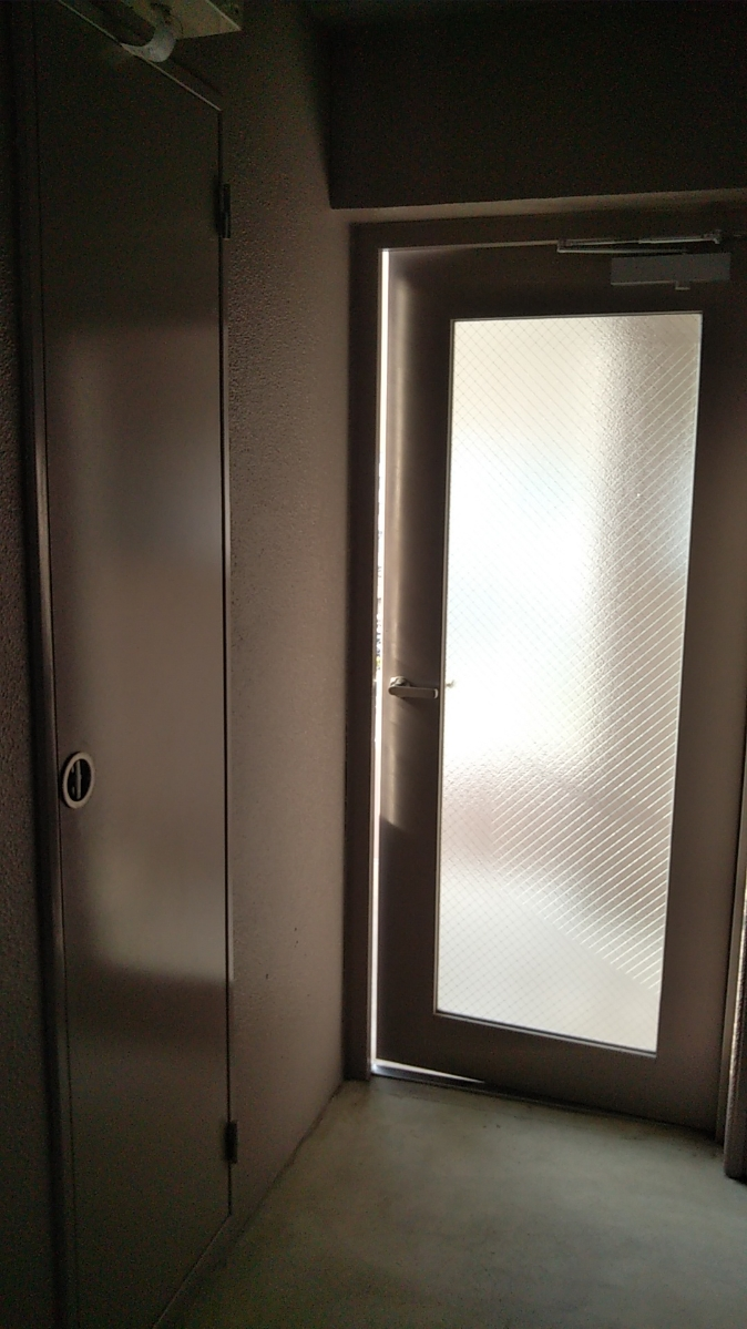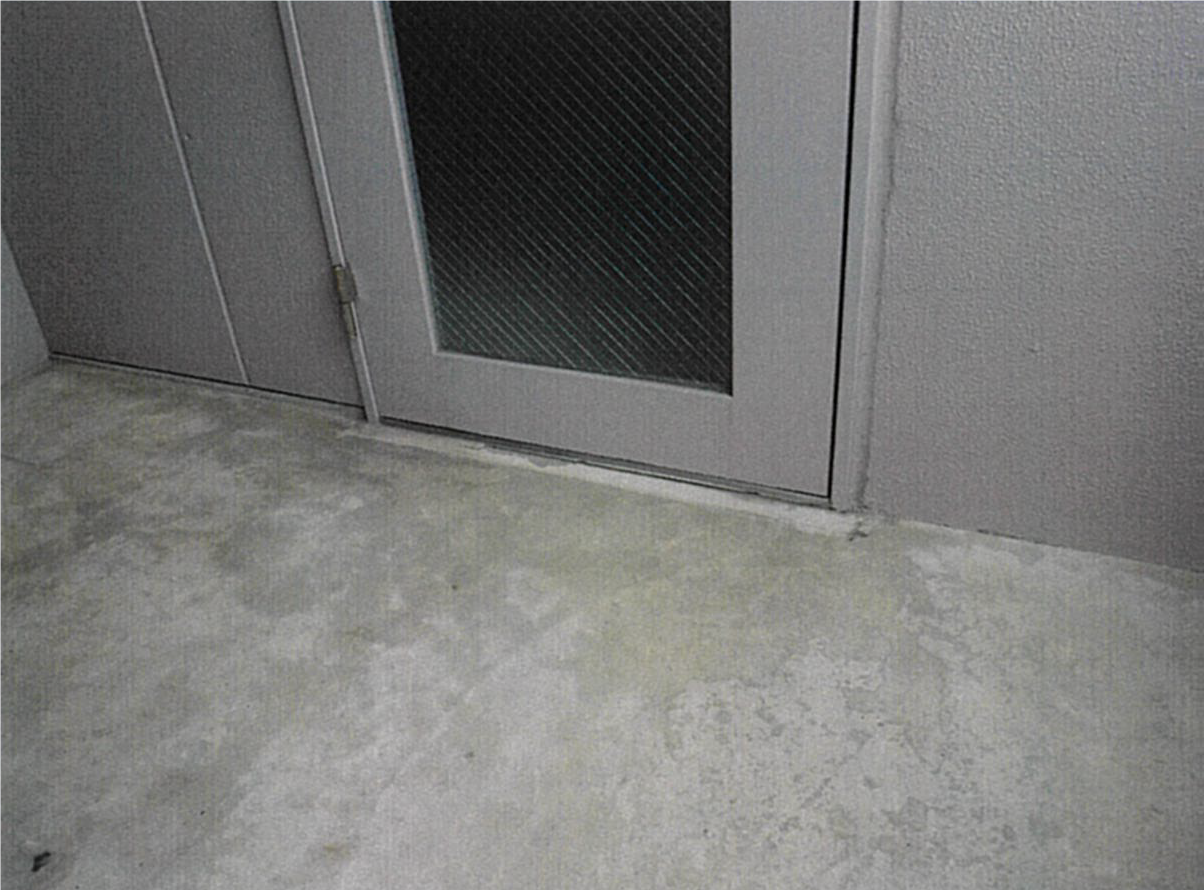 こちらの物件では外階段の扉の下の枠が膨れてしまい、完全に閉まらなくなってしまったため、このままの状態では強風時に扉が勝手に開いてしまう状態となっています。