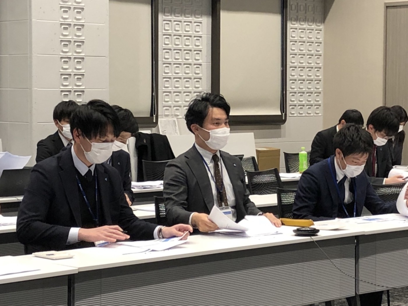 質疑応答を行うのは、各店舗の支店長、さらに役員の方も参加します。専門的な難しい質問をされることがあるので、新入社員は事前に沢山練習して本番に臨みます。