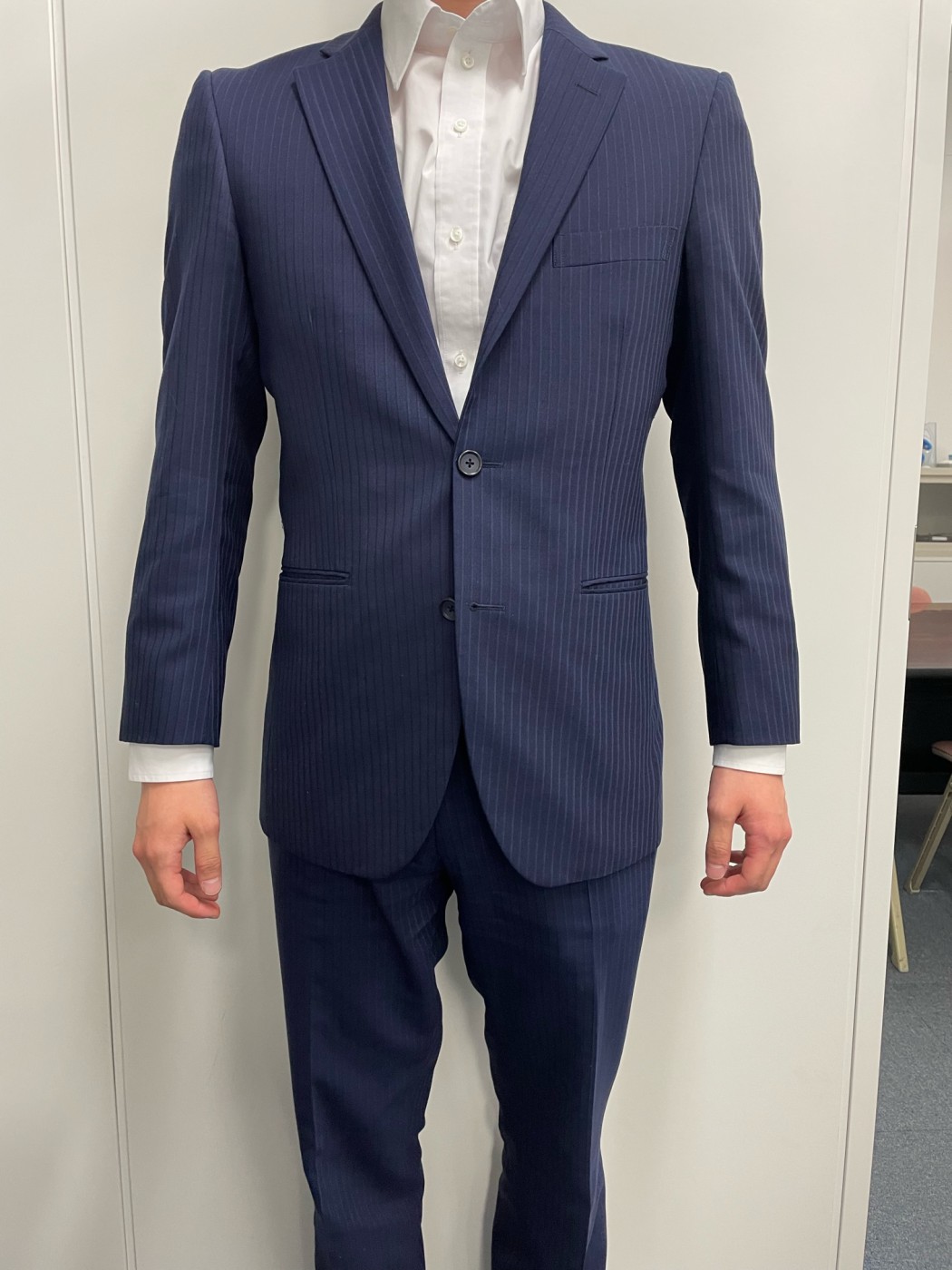 普段私が着用しているストライプ柄のスーツです。