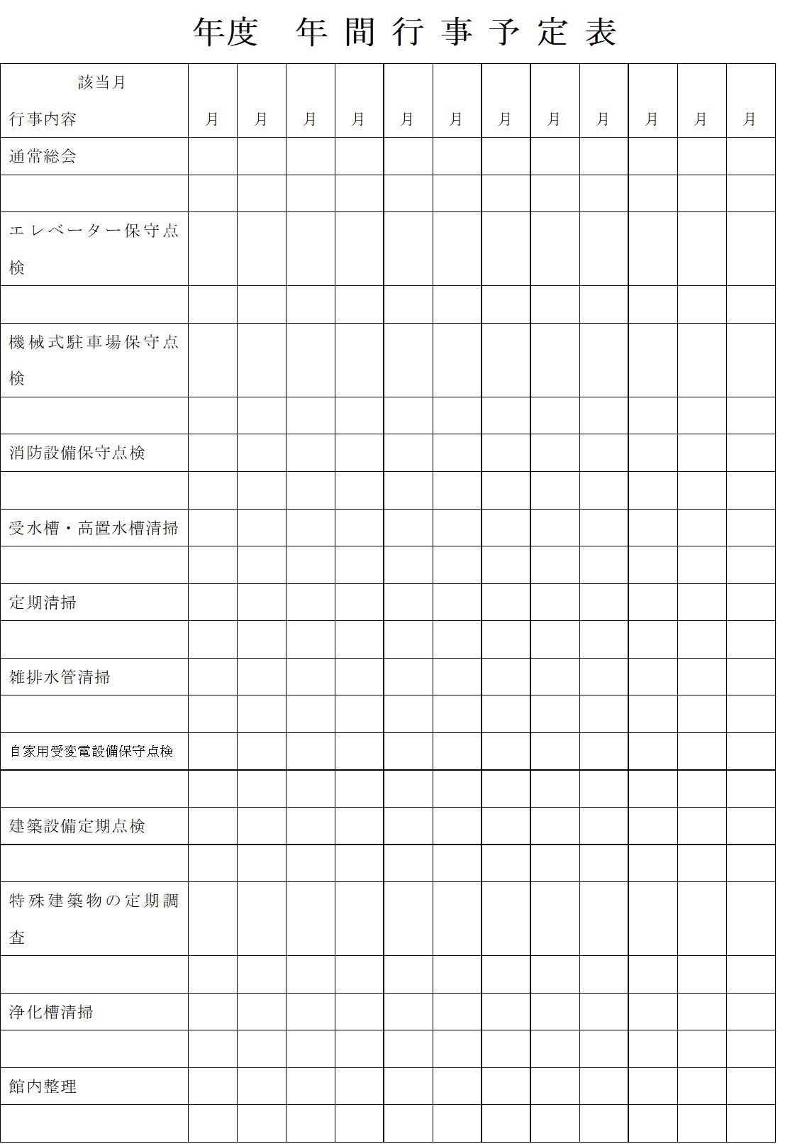 前年度までの実績を参考に、各種行事の実施予定月を『年間行事予定表』に記入しておきます。